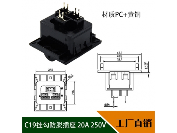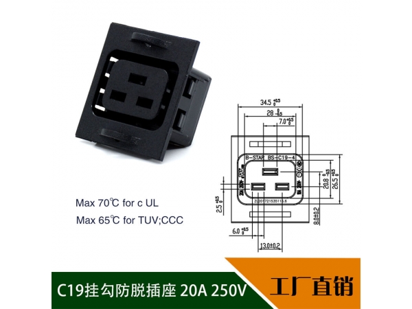 BS-C19-4挂勾防脱IEC通用PDU插座